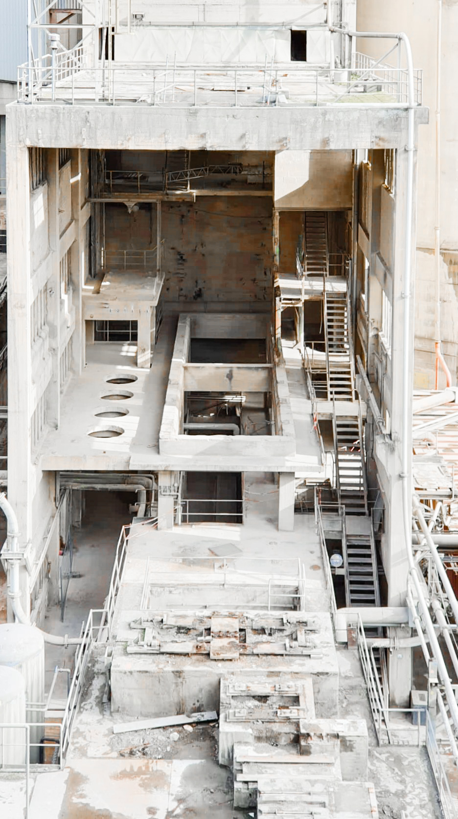Knepper's expertise in the demolition and dismantling of large industrial plants grows with every project. In this complex project in particular, there was a lot of new experience to be gained. The dismantling of a decommissioned furnace plant, some of whose components weighing several tons were lying in the ground, difficult to access and rising up to 30 meters into the air, required all the skills needed to find a solution. The colossus was to be dismantled step by step and as effectively as possible. The whole thing would not be a problem if it were to be completely demolished. Here, however, the building was to remain standing for subsequent use. In addition, cables and pipes for operating systems ran through the building, which could not be damaged under any circumstances. A tough nut to crack, which Knepper did successfully.