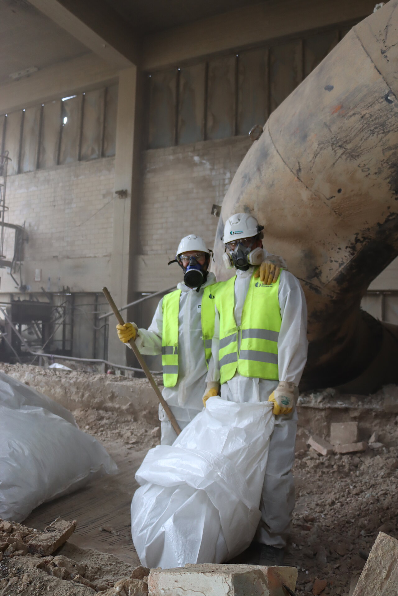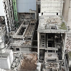 For OPTERRA, speed and costs are the most important factors in addition to safety. In order to make the demolition and dismantling of the furnace line as economical as possible, Knepper got creative when considering the question: What is the quickest way to get the system out? The usual, but also more complicated way would have been to scaffold the plant. The Knepper team saw things differently, because with the right equipment consisting of special machines, the whole thing could be tackled more efficiently. "Our concept was to work our way from top to bottom when dismantling the three electrostatic precipitators and lift the parts out of the building individually and very carefully using a telescopic crane," says site manager Pedro Cano from Knepper.