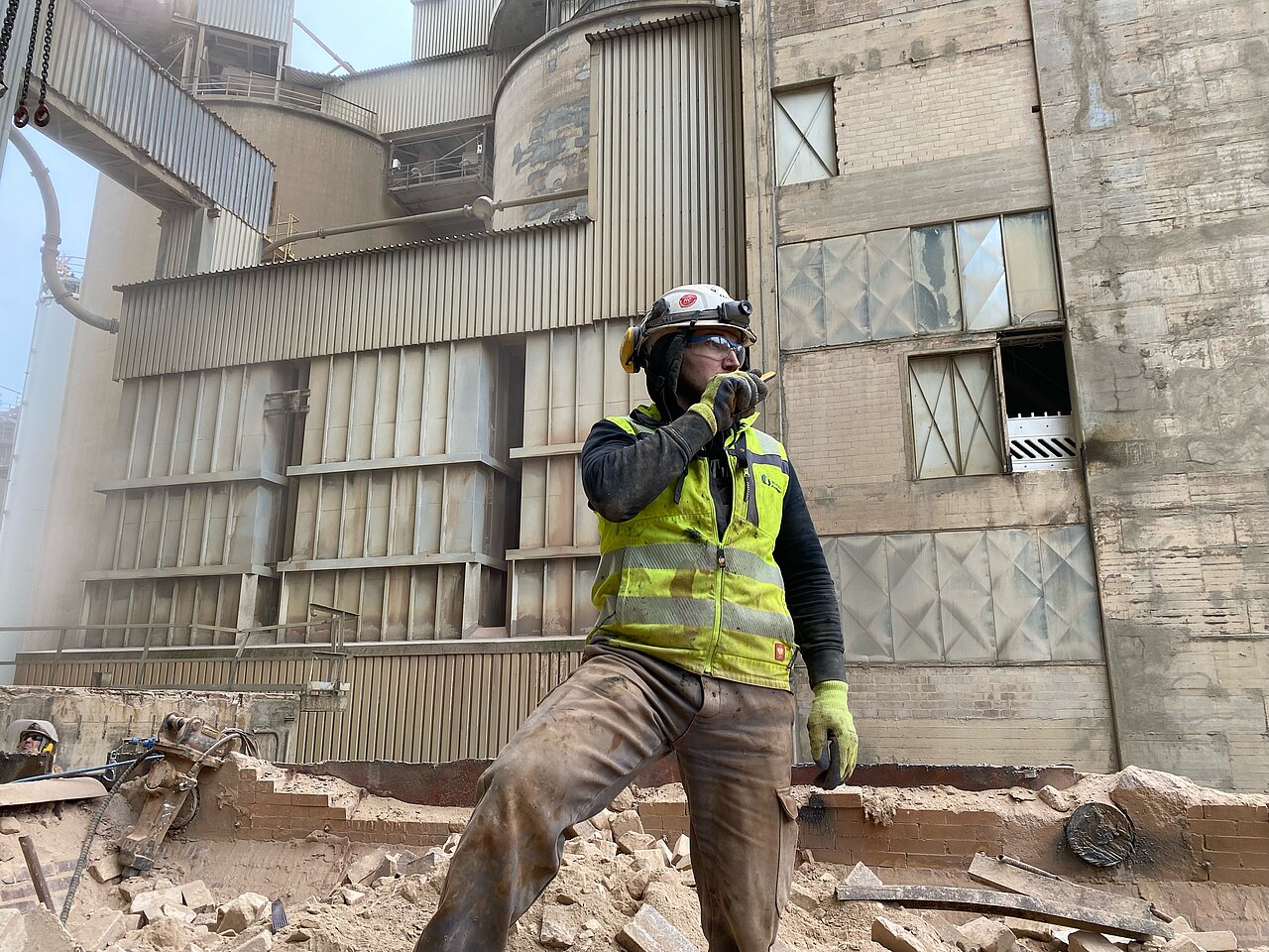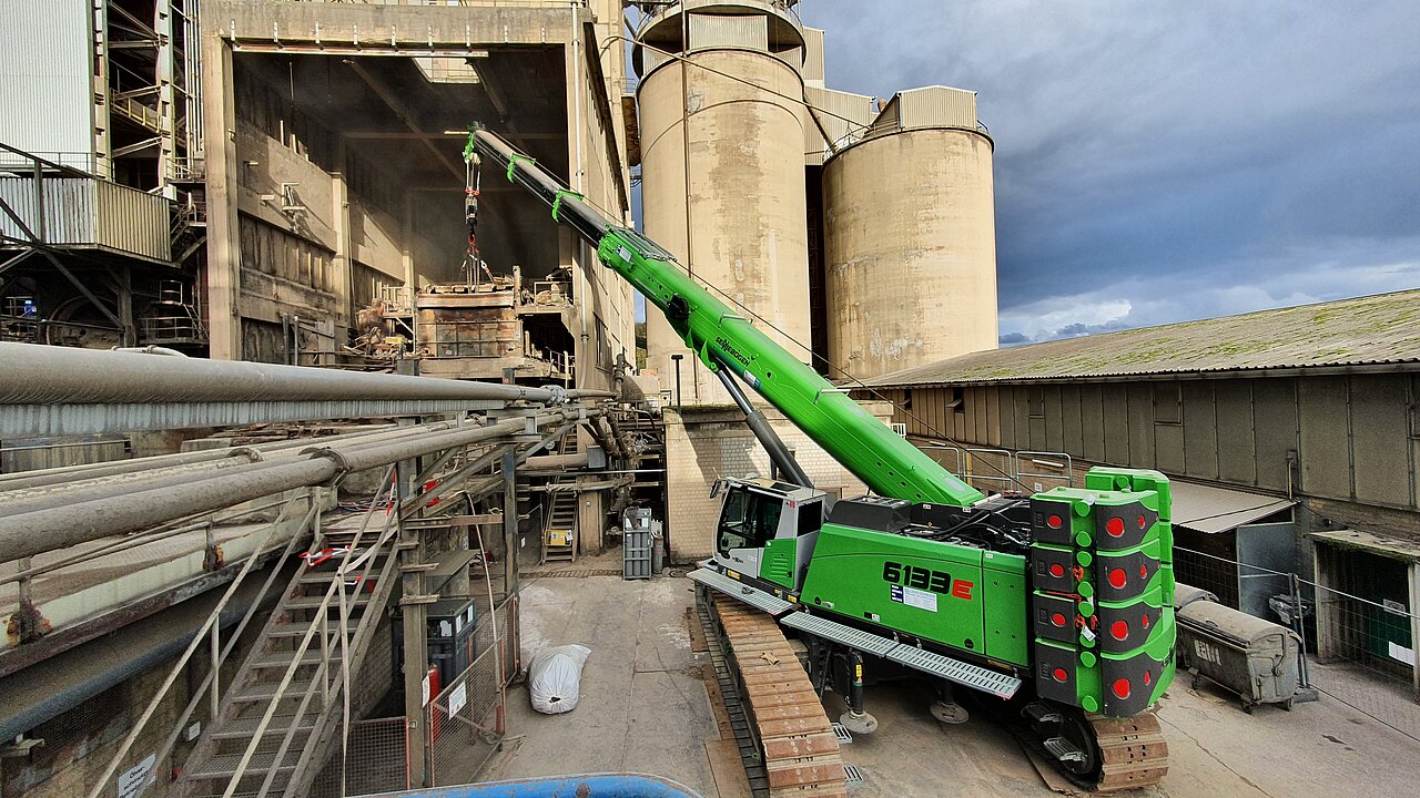In order to make room for the mobile crane, systems on the ground were dismantled first. The Knepper team worked harnessed from a specially secured lifting platform to cut the filters and façade elements into pieces. The telescopic crane was used to transport the parts, which weighed up to 10 tons, downwards. Two mobile telescopic cranes were used to dismantle the 60-metre-high chimney - a rare sight. The spectacular work of the Knepper team took place under the watchful eye and supervision of the OPTERRA technical manager, as production at the plant continued. Compliance with the strict safety regulations was therefore paramount. Pedro Cano reports: "After a short time, the people in charge recognized that we were working very cleanly and placed a lot of trust in us."