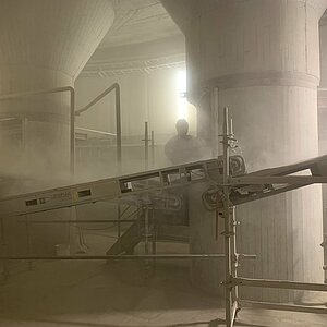 - At the discharge hoppers, the material was fed onto our conveyor belts via chutes and thus separated from the rest of the production process