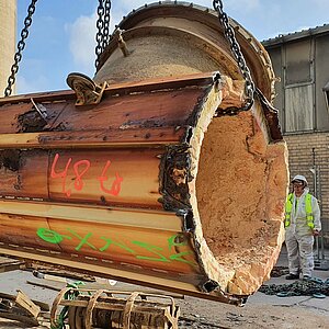 Hauptsächlich fiel aus dem Rückbau von Kühler, Filter und Ofenrohr schwerer Mischschrott an, der direkt auf der Baustelle gewogen und auf Chargier Maß geschnitten bzw. gebrannt wurde. Knepper fand auch Vermarktungswege für die ca. 10 Tonnen schweren Laufringe des Ofenrohrs, die nicht vor Ort zerkleinert werden konnten. Zudem achtet Knepper bei der Vermarktung auf möglichst umweltschonende Transporte und wählt bevorzugt Schrotthandelspartner aus, die über Wasserwege direkt erreichbar sind oder über einen eigenen Bahnanschluss verfügen. Darüber hinaus kümmerte sich Knepper um die fachgerechte Entsorgung sämtlicher anfallender Stoffe, wie Isolierstoffe und Ölreste. „Wir haben es sehr geschätzt, dass Knepper verschiedene Zulassungen für die Entsorgung hat und wir das Thema im Sinne unserer Nachhaltigkeitsstrategie komplett abgeben konnten. Bis auf die Betonteile, die lassen wir direkt in unsere Produktion einfließen. Wir haben weitere Anlagenteile, die zurückgebaut werden müssen – mit Knepper jederzeit wieder“, resümiert Projektleiter Christian Zenner.
