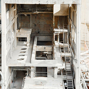 Mit jedem Projekt wächst das Know-how von Knepper im Abbruch und der Demontage von großen Industrieanlagen. Insbesondere bei diesem komplexen Projekt, gab es viele neue Erfahrungen zu sammeln. Beim Rückbau einer außer Dienst gestellten Ofenanlage, deren tonnenschwere Komponenten teils schwer zugänglich im Boden lagen und bis zu 30 Metern in die Höhe ragten, waren sämtliche Kompetenzen bei der Lösungsfindung gefragt. Der Koloss sollte Schritt für Schritt und möglichst effektiv zerlegt werden. Bei einem Komplettabriss wäre das Ganze kein Problem. Hier sollte das Gebäude für eine Nachnutzung jedoch stehen bleiben. Zusätzlich führten Kabel- und Rohrleitungen für in Betrieb befindliche Anlagen durch das Gebäude, die keinesfalls beschädigt werden durften. Eine harte Nuss, die Knepper erfolgreich geknackt hat.