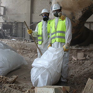 Für OPTERRA zählen neben dem Sicherheitsaspekt vor allem Geschwindigkeit und Kosten. Um Abbruch und Demontage der Ofenlinie möglichst wirtschaftlich zu machen, wurde Knepper bei der Betrachtung der Frage kreativ: Auf welche Art und Weise bekommen wir die Anlage am schnellsten raus? Der übliche, aber auch der umständlichere Weg wäre gewesen, die Anlage einzurüsten. Das Team von Knepper sah das anders, denn mit dem richtigen Equipment aus Spezialmaschinen, konnte man das Ganze effizienter angehen. „Unser Konzept sah so aus, dass wir uns beim Rückbau der drei Elektrofilter von oben nach unten durchgearbeitet und die Teile einzeln und sehr vorsichtig per Teleskopkran aus dem Gebäude rausgehoben haben“, so Bauleiter Pedro Cano von Knepper.