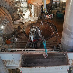 - Demontage der Zyklonstufe IV in einem Wärmetauscher in 65 m Höhe