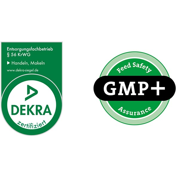 Mit der Knepper WerPro gehen Sie auf Nummer sicher. Wir sind als Entsorgungsfachbetrieb für das Handeln und Makeln von allen Abfällen weltweit zertifiziert. Außerdem arbeiten wir nach dem Standard Good Manufacturing Practice Plus Feed Safety Assurance (GMP+) „Handeln mit Einzel-, Mischfuttermitteln und Zusatzstoffen“. GMP+ verfolgt das Ziel, ausschließlich unbedenkliche und sichere Futtermittel in den Verkehr zu bringen.